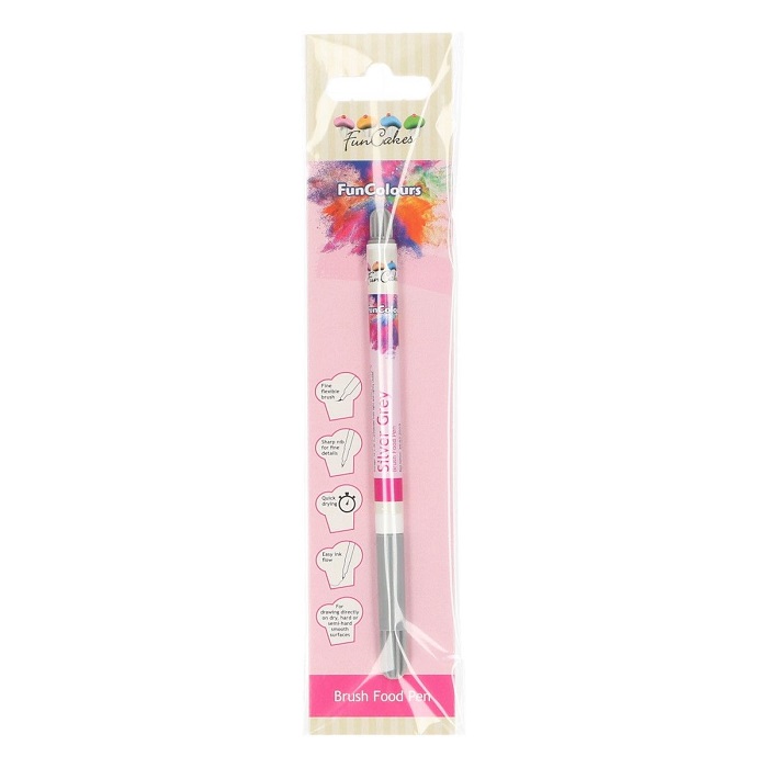 Feutre alimentaire gris argenté pour dessiner directement sur des surfaces lisses qu'elles soient sèches, dures ou molles, comme la pâte à sucre ou le fondant. Il est idéal pour personnaliser vos douceurs avec des messages, des noms ou des dates. Ce feutre est également parfait pour dessiner des yeux, une bouche et autres détails sur des visages ou pour tracer les nervures de pétales et de fleurs.