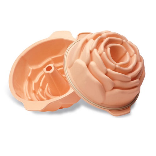 Moule en silicone en forme de rose. Diamètre du moule : 22 cm - Hauteur : 10 cm. Volume : 2,25L